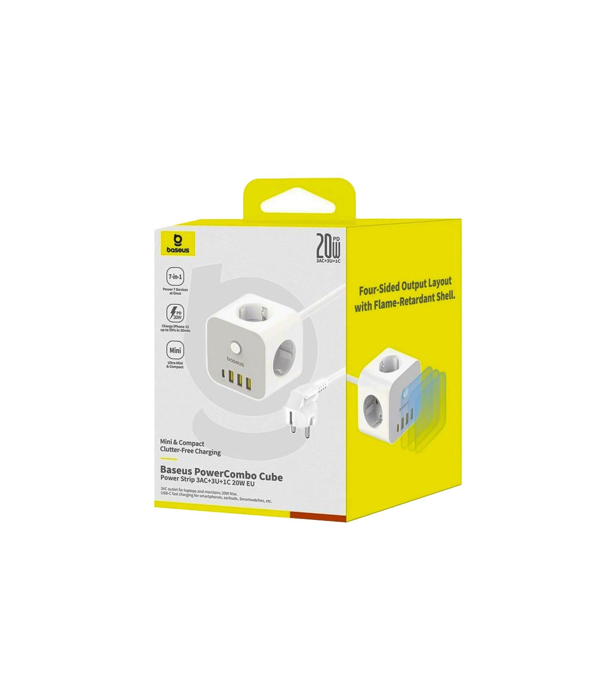 - 7 در 1 (7-in-1): شامل 3 پریز برق AC، سه پورت USB-A و یک پورت USB-C .